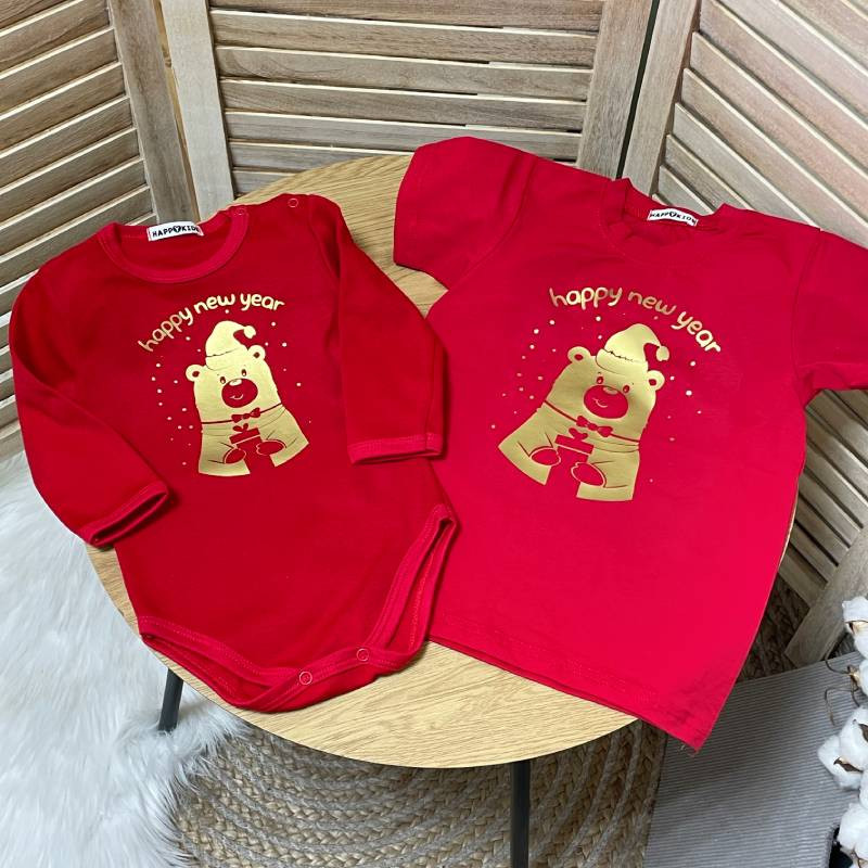 Набір сімейних новорічних футболок "Happy New year" з ведмедиком