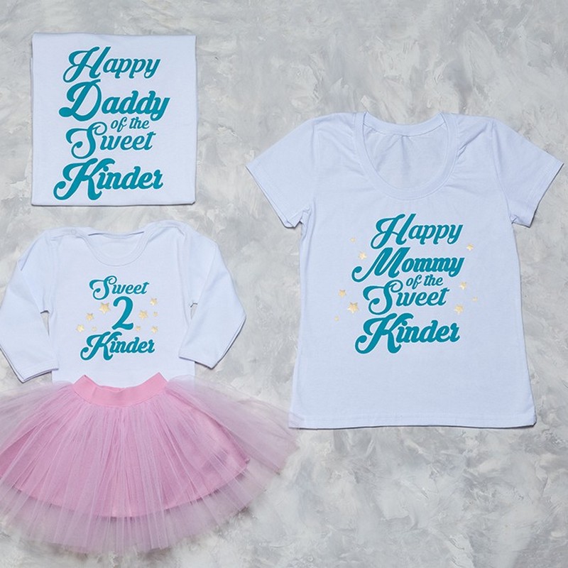 Комфортні футболки в одному стилі найкращий вибір для всієї родини ідеально підходить одяг на перший день народження дитини.