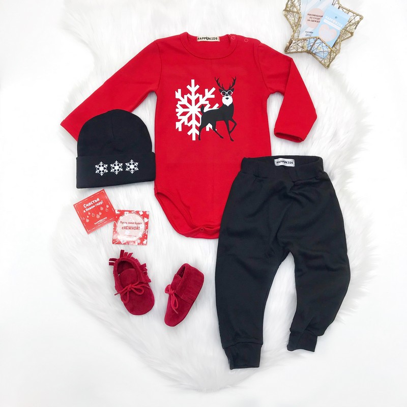 Новорічний універсальний боді з прикольним написом підійде для хлопчика. Доповнюй будь-якими аксесуарами на свій смак і створюй свій неповторний новорічний образ.