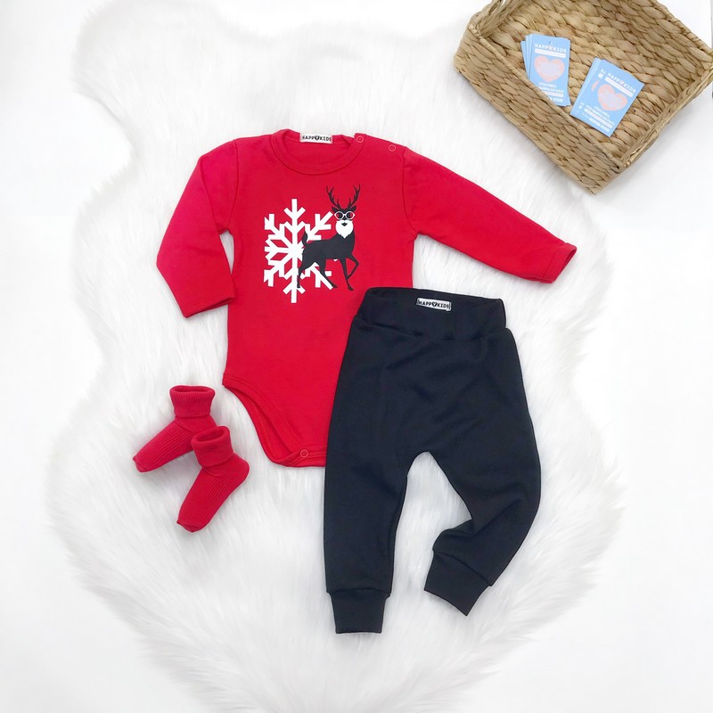 Новорічний комплект для новонародженої дівчинки та хлопчика з написом на вибір ви можете в нашому інтернет-магазині одягу для всієї родини - "HappyKids".