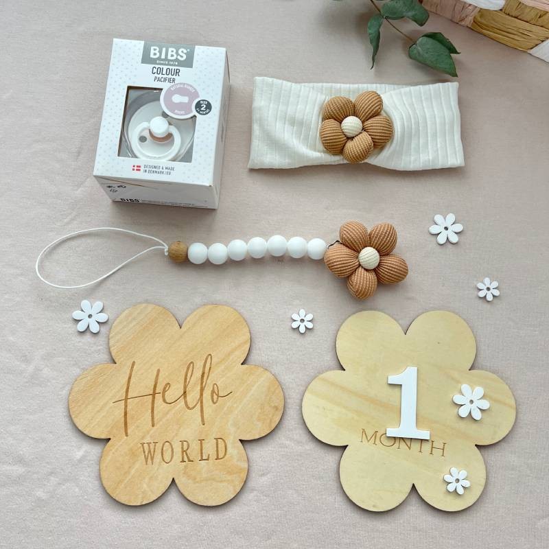 Подарунковий бокс "Квіточка" для новонародженої дівчинки - ідеальний для першого подарунка або на виписку. Продумане до дрібниць рішення, коли шукаєте корисний, стильний та естетичний подарунок для малечі.