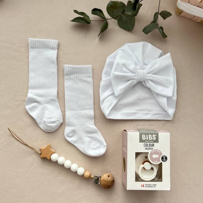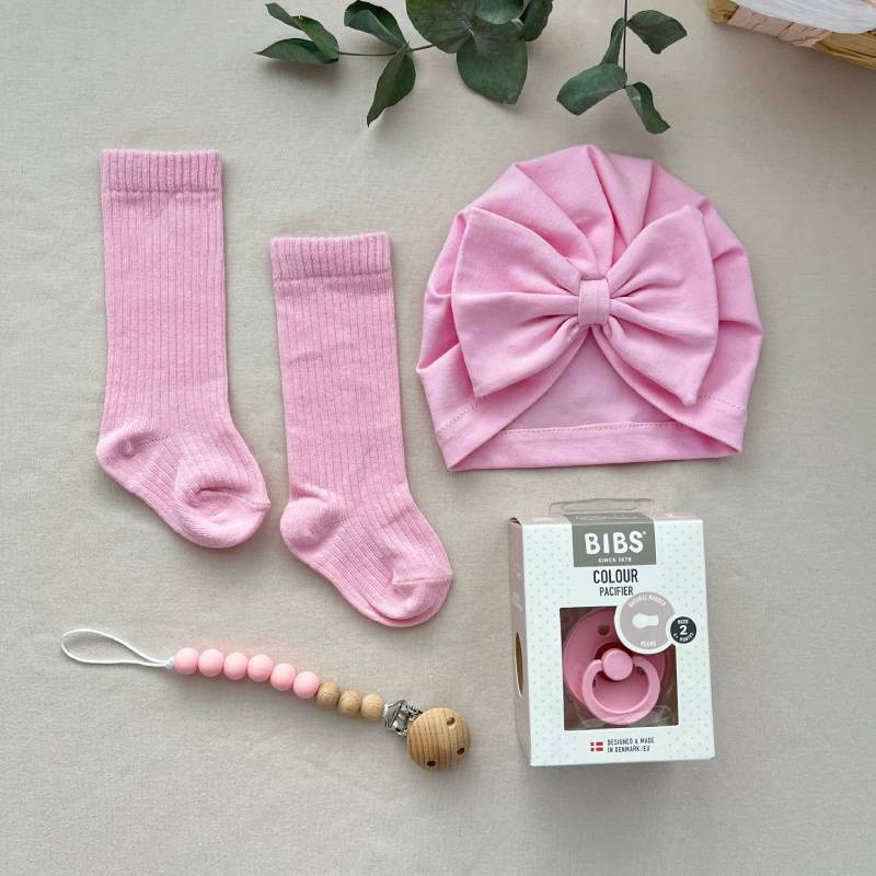 Ніжний сет для маленької модниці — все, що потрібно з перших днів життя, зібрано в одному чарівному боксі. Ідеальний подарунок для виписки або першої фотосесії.