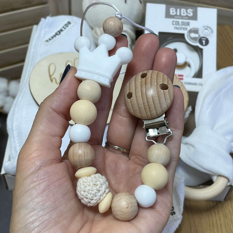 - Силіконовий тримач для пустушки: Зручний і безпечний тримач, який завжди на місці і не дає пустушці загубитися.