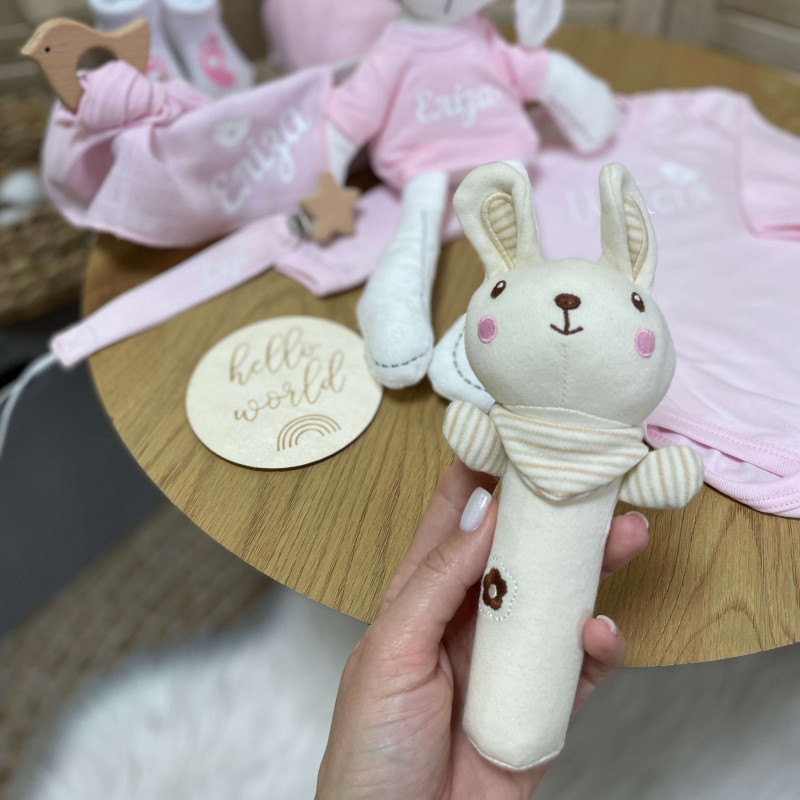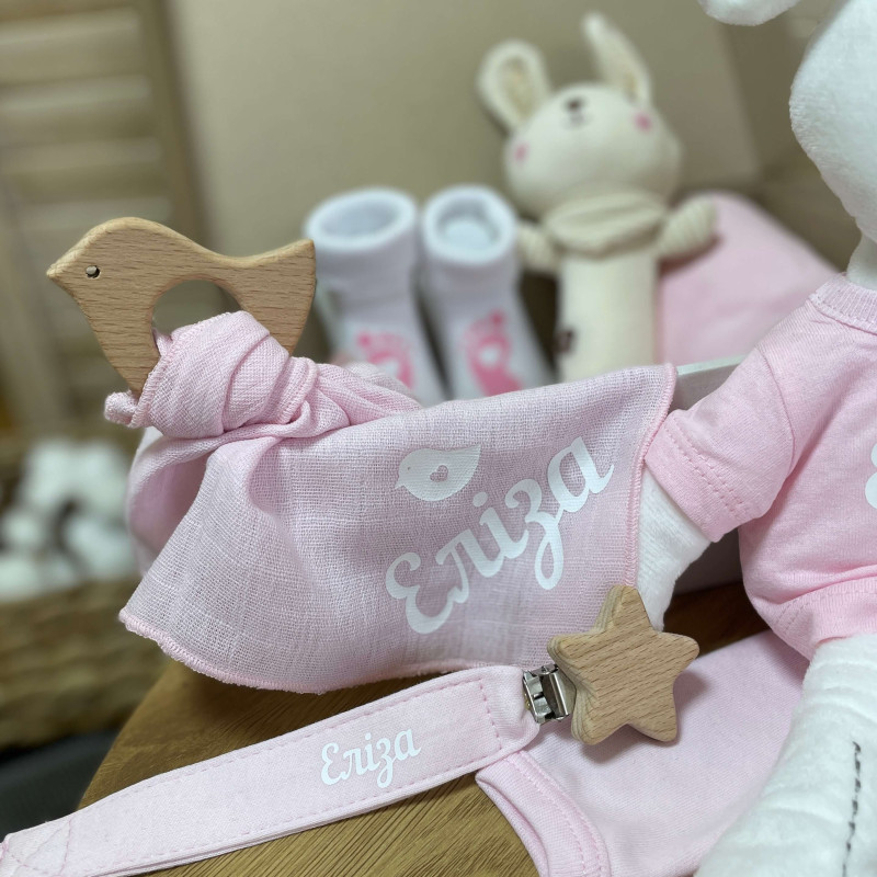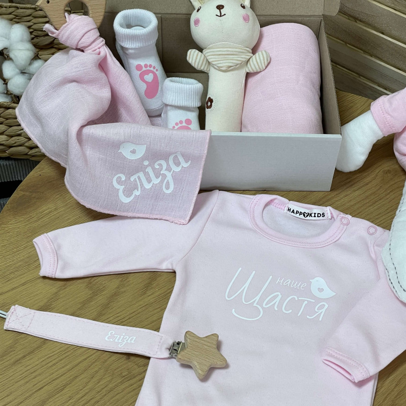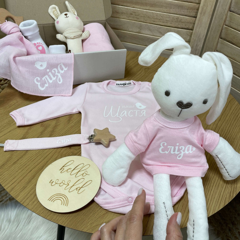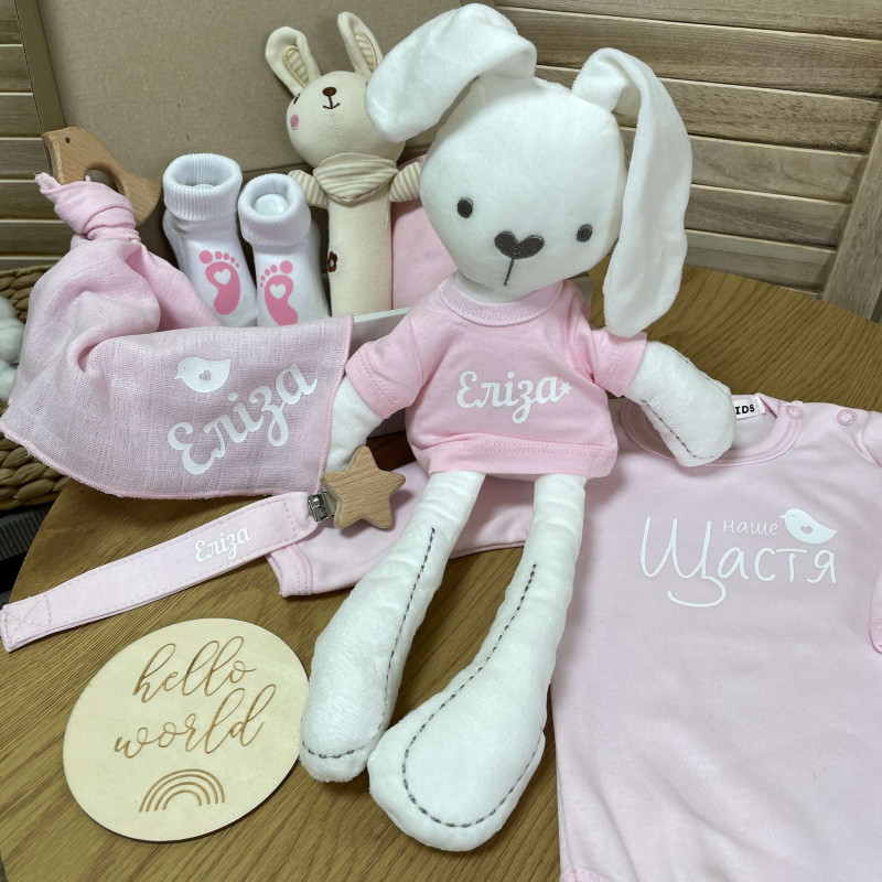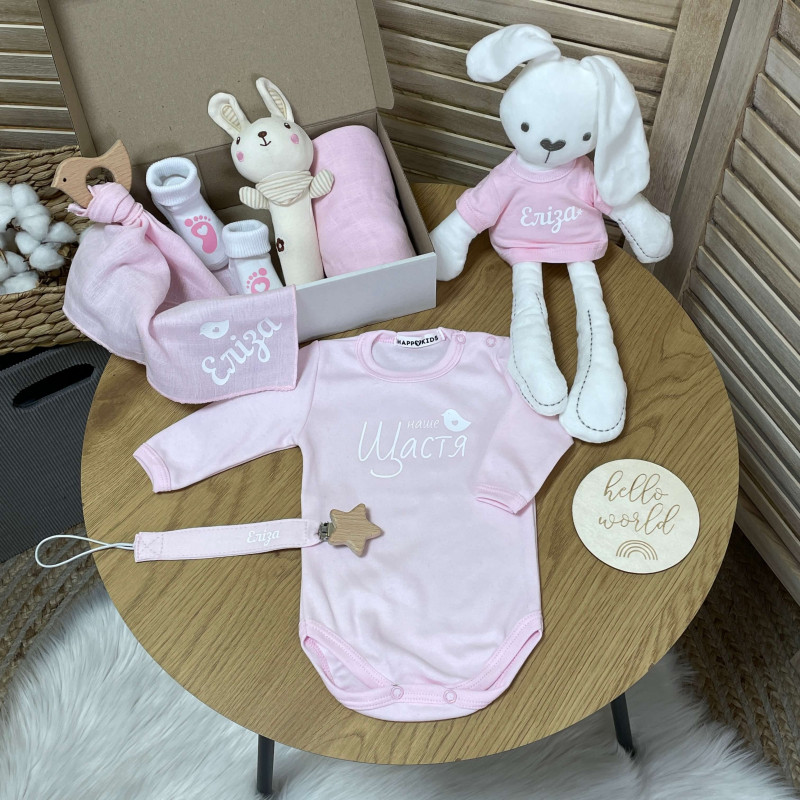 Подарунковий бокс новонародженому з зайчиком рожевий