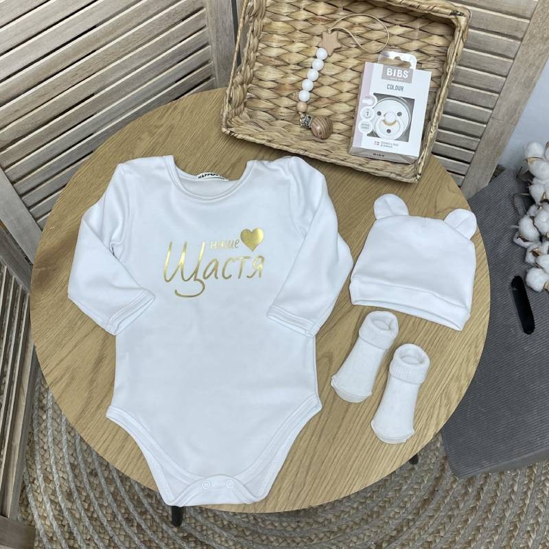 Поява дитини – це справжнє диво, яке приносить у дім радість і тепло. Подарунковий набір для новонароджених "Наше щастя" – це ідеальний вибір для першого гардеробу малюка. Усі речі виготовлені з натуральних, безпечних матеріалів, а стильний дизайн та зворушливі деталі роблять набір чудовим подарунком для молодих батьків.