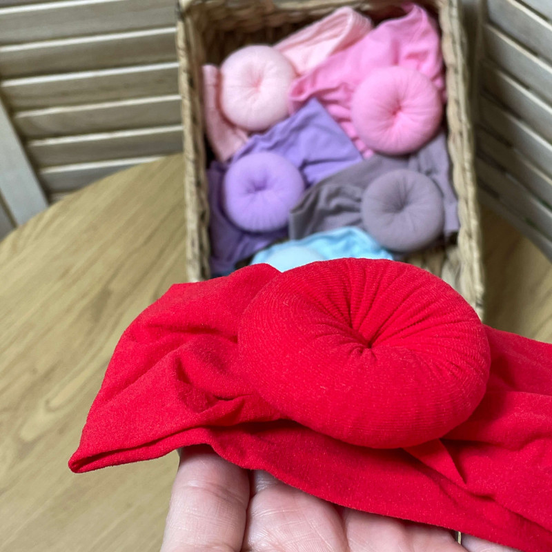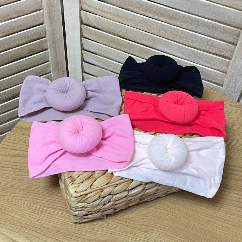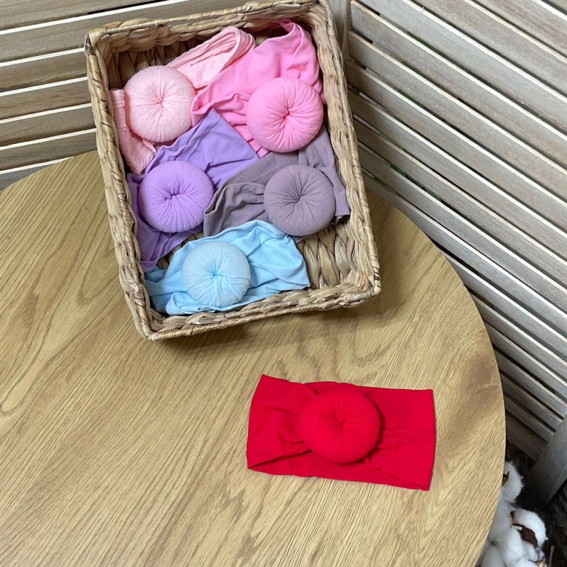 М'яка еластична пов'язка для маленьких дівчат з стильним бубликом - красивий та стильний аксесуар для новонародженої дівчинки.