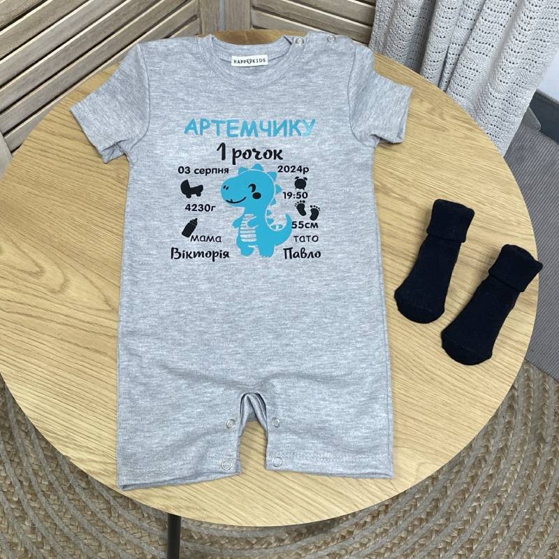 Характеристика товару: Ромпер-пісочник на перший день народження з метрикою
