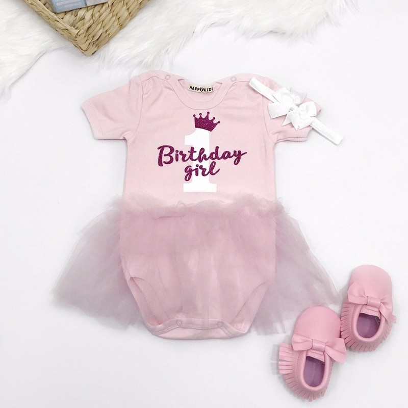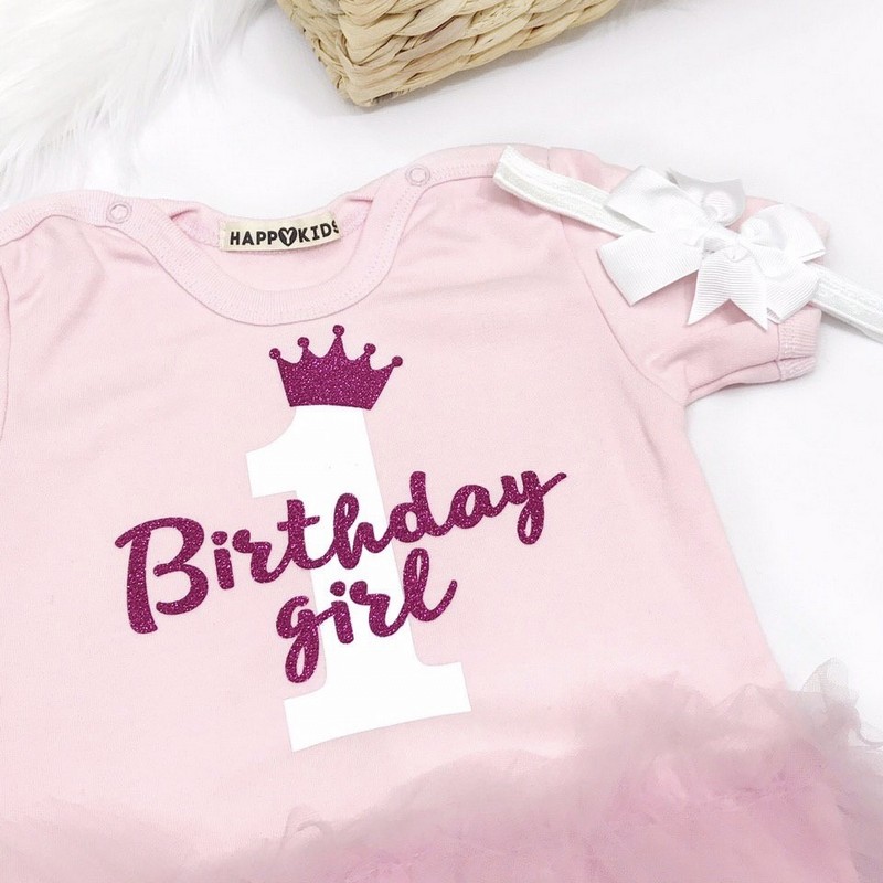 Оригинальный боди для маленькой принцессы с блестящей надписью на первый день рождения "Birthday girl" - станет оригинальным и стильным на день рождения дочери, идеально подходит для домашней фотосессии и празднований.