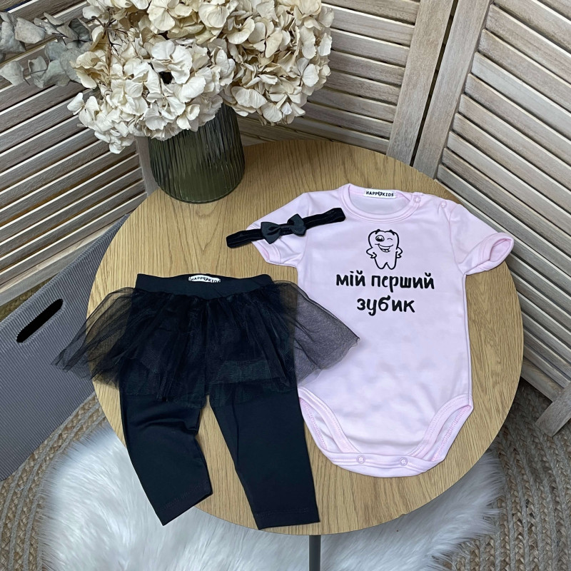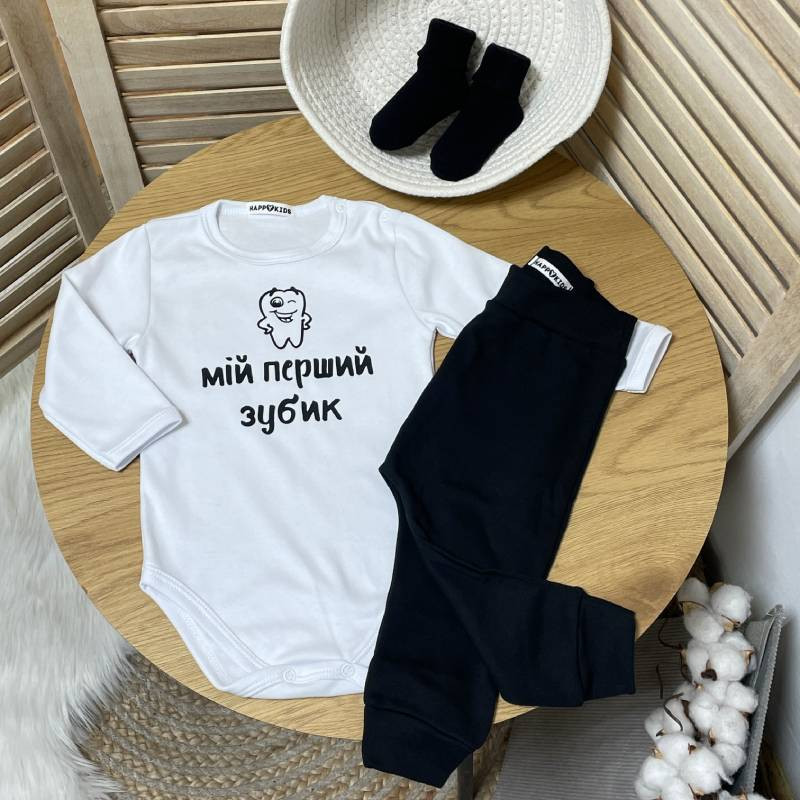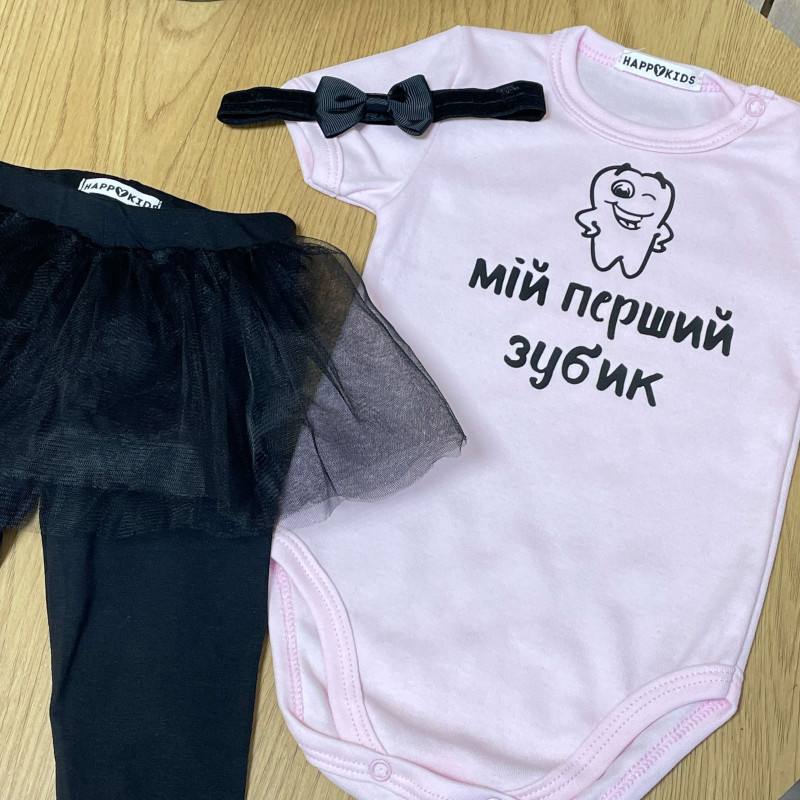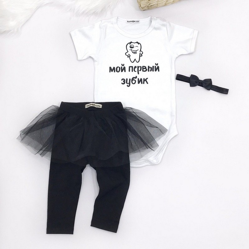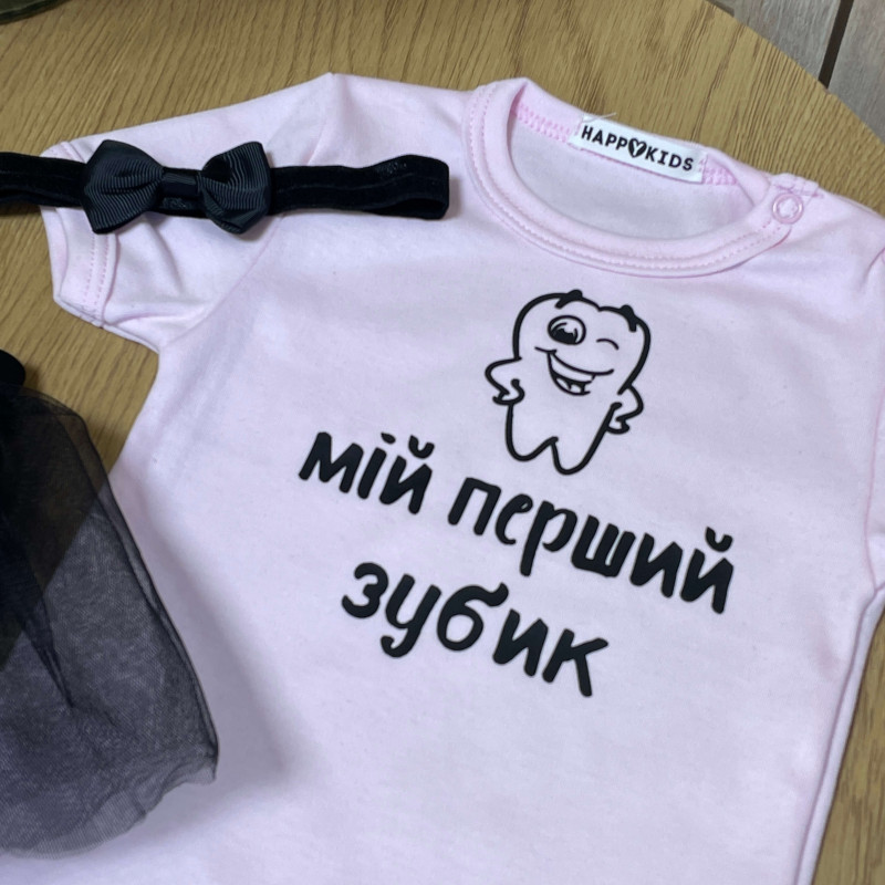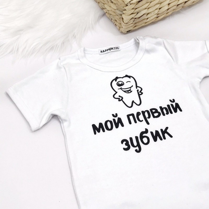 Незабываемые памятные фото в боде с принтом "Мой первый зуб" оставят упоминание на всю жизнь.