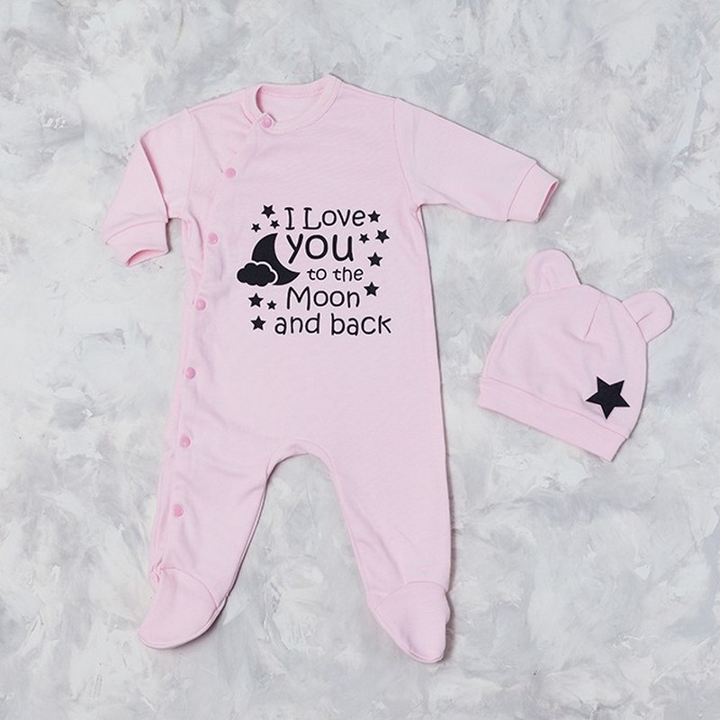 Удобный оригинальный слип-человечек для новорожденного с надписью люблю тебя до луны и обратно - отличная одежда для самых маленьких крошек.