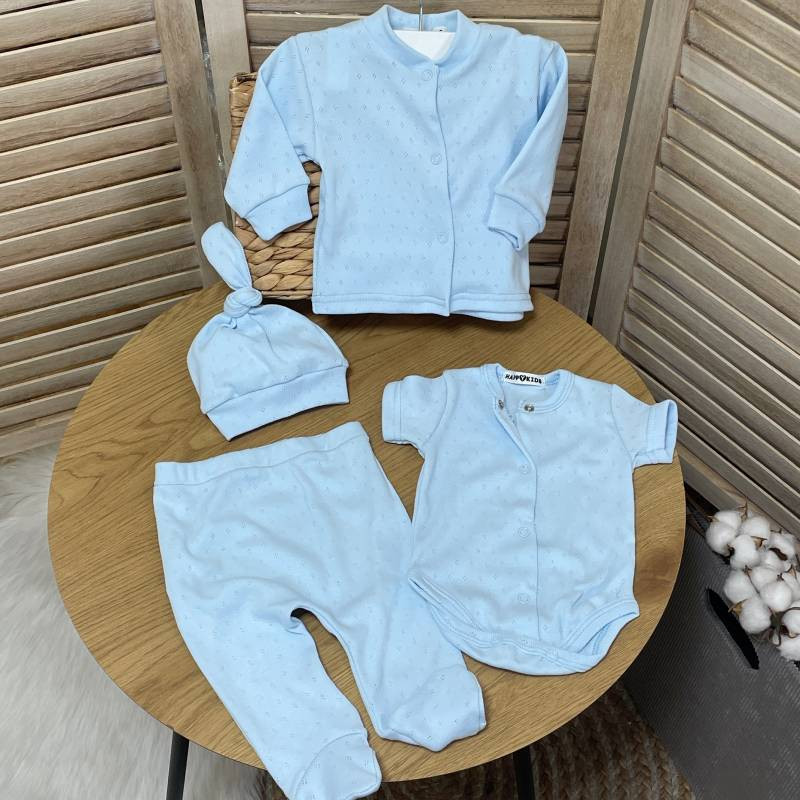 Отличный комплект для новорожденных - 100"% хлопок с перфорацией станет незаменимым дополнением к летнему гардеробу ваших малышей.