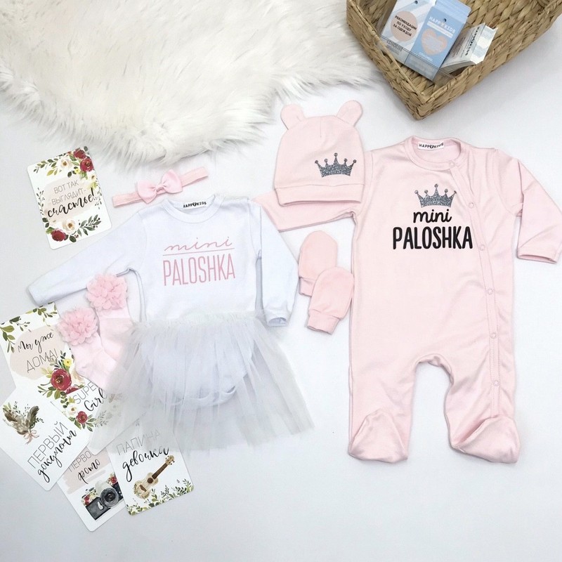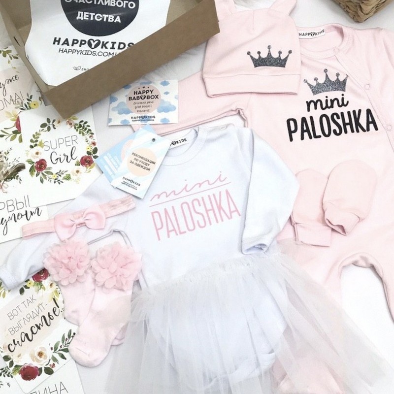 Готовые комплекты новорожденным с любыми надписями на заказ вы можете купить в нашем магазине украинского производителя "HappyKids".
