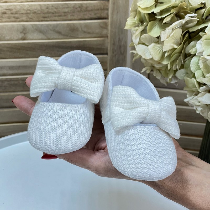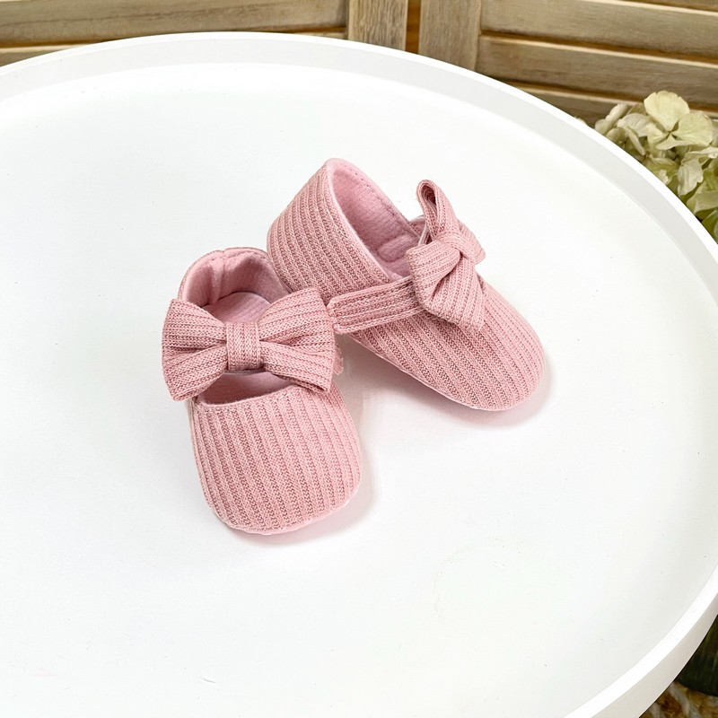 Стильные нарядные пинетки для новорожденной девочки с бантиком для малышек дополнят образ любой принцессы. Красивые пастельные цвета и трендовый рубчик