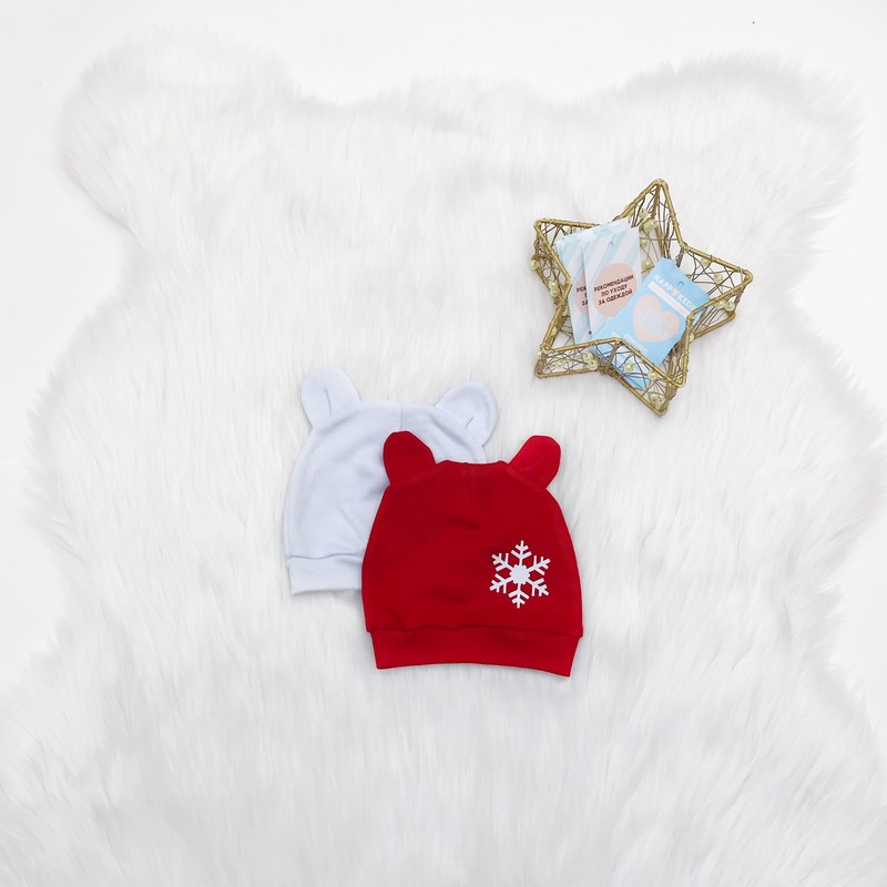 Шапочка з вушками та сніжинкою