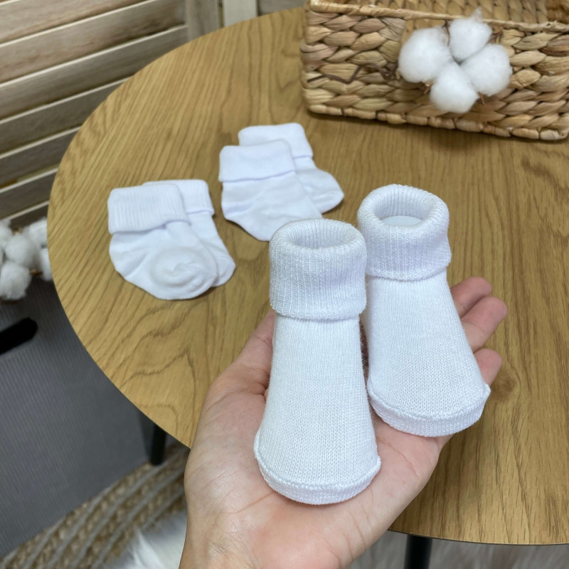 М'які однотонні білі носочки для новонароджених малюків до року - еластичні та універсальні доповнять будь-який образ малюка і зроблять його неповторним.