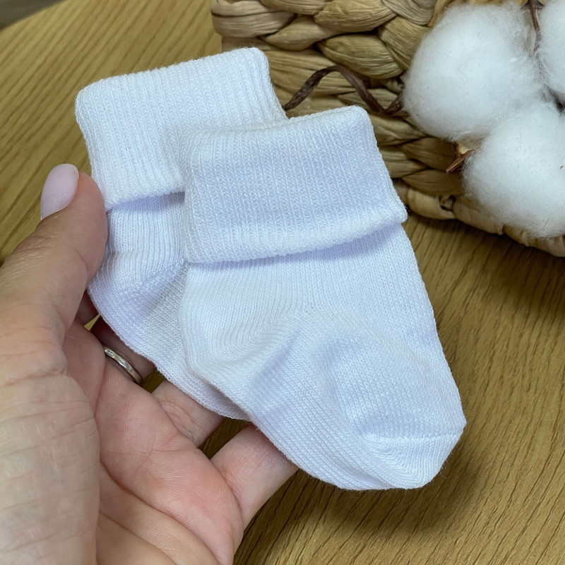 М'які однотонні білі носочки для новонароджених малюків до року - еластичні та універсальні доповнять будь-який образ малюка і зроблять його неповторним.