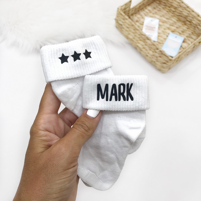 Іменні шкарпетки для малюків із зірочками – індивідуальний напис для вашої зірочки