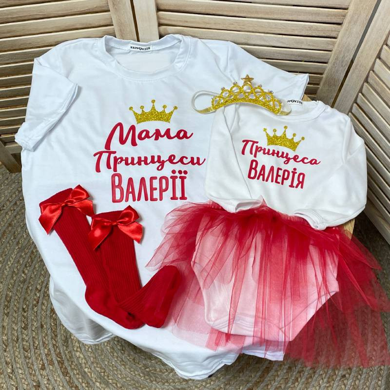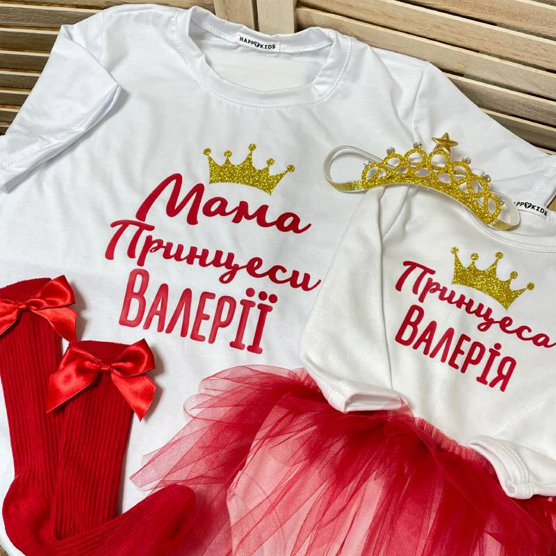 Унікальний дизайн: Іменний принт додає комплекту особливого шарму, а стильні написи "Принцеса" для донечки та "Мама Принцеси" для мами виглядають чарівно на фото та в реальному житті.