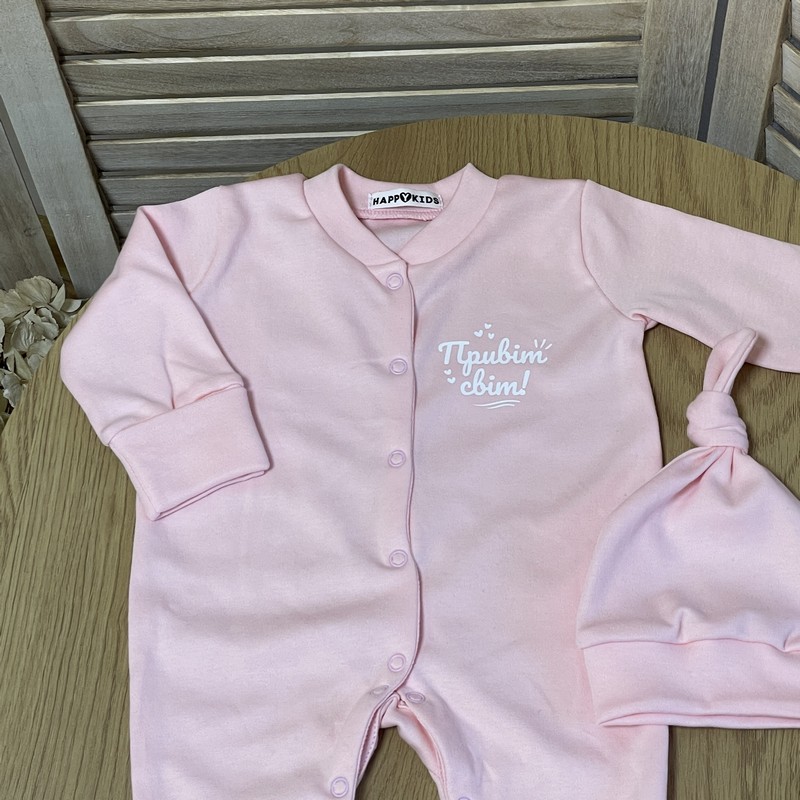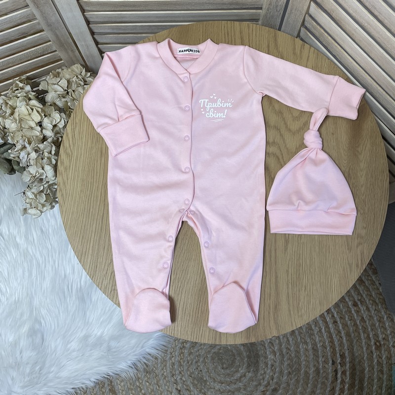 Сліп-чоловічок "Привіт, світ!" з шапочкою до пологового будинку