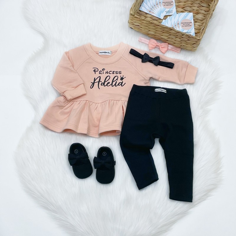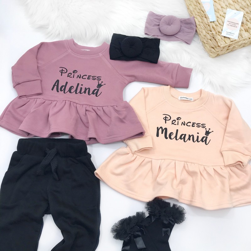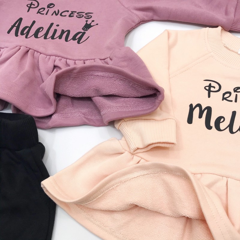 Базові якісні бавовняні світшоти дівчаткам з оригінальним написом Princess та іменем дитини