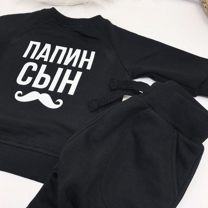 Базовий якісний бавняний світшот малюку з оригінальним написом Татка син - під замовлення