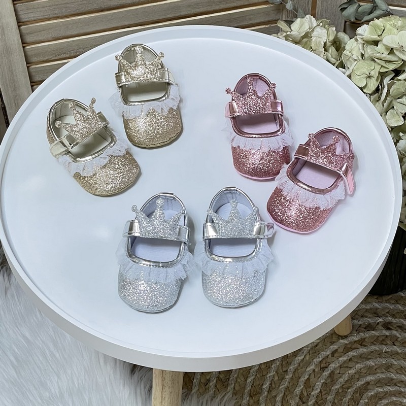 Туфельки-пінетки блискучі з короною для дівчаток до року