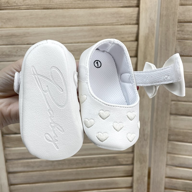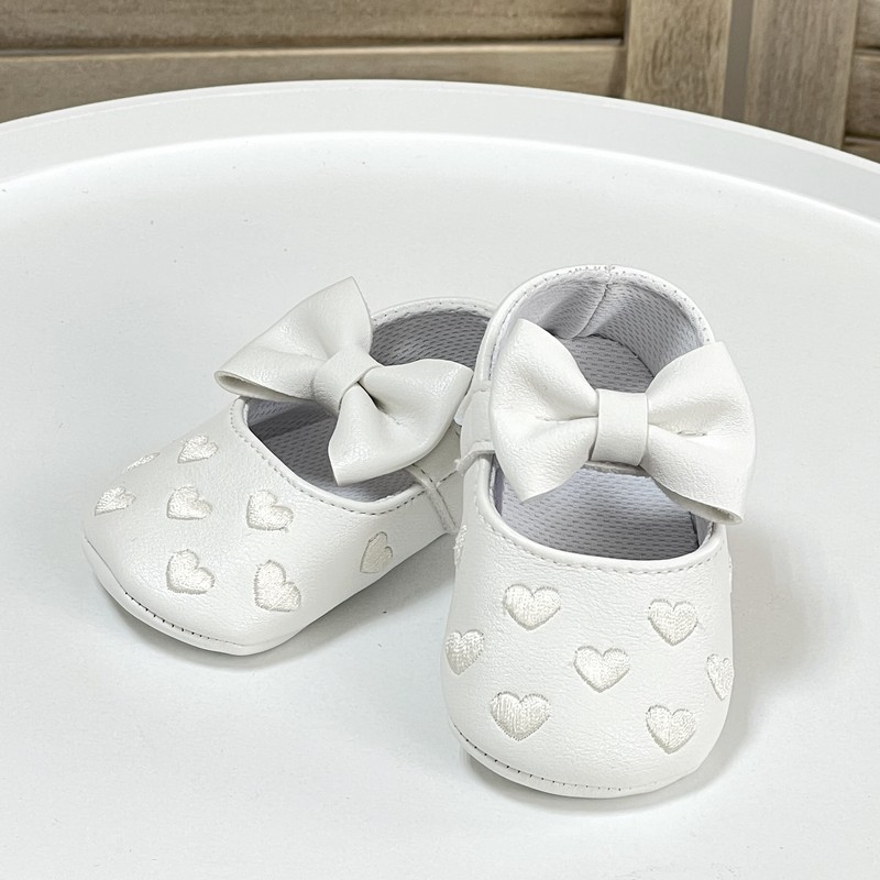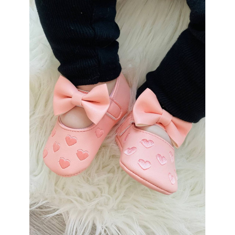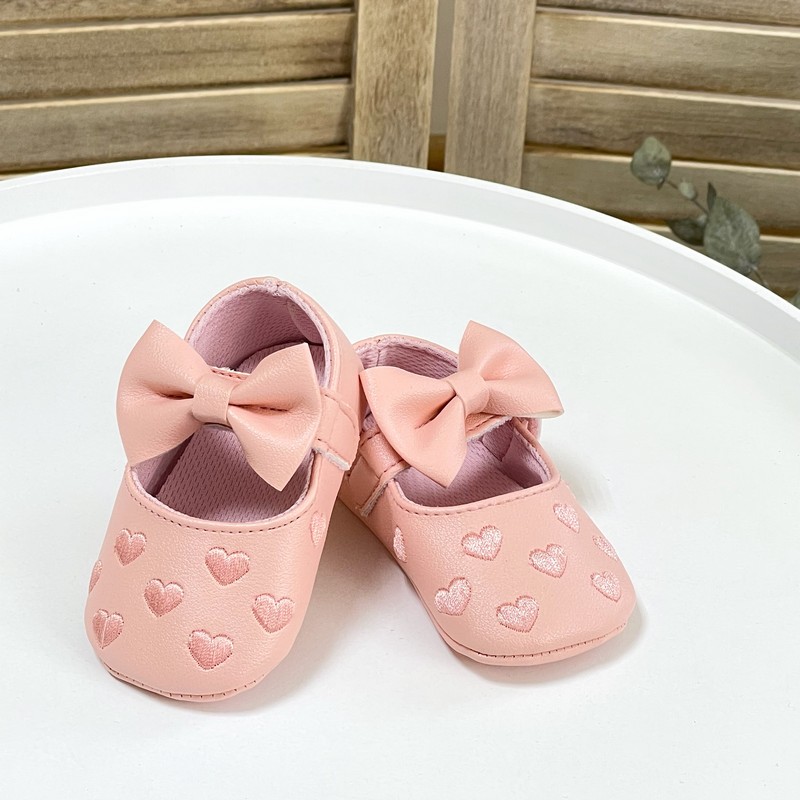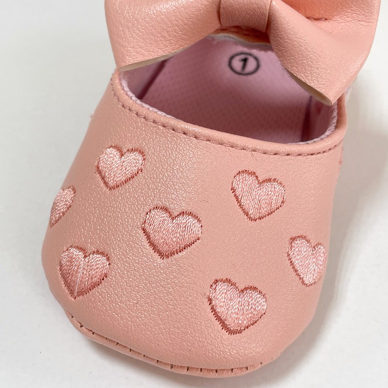 Туфельки-пінетки з бантиком та сердечками для дівчаток до року