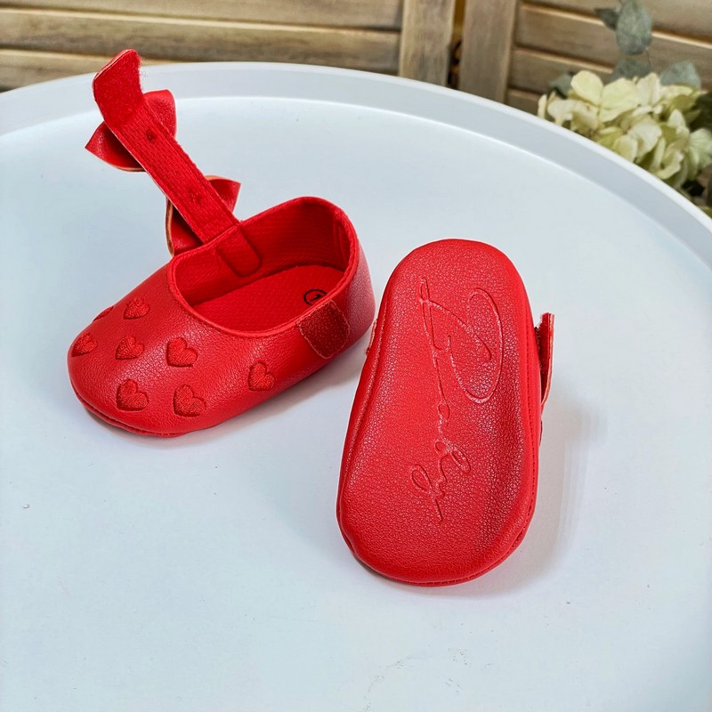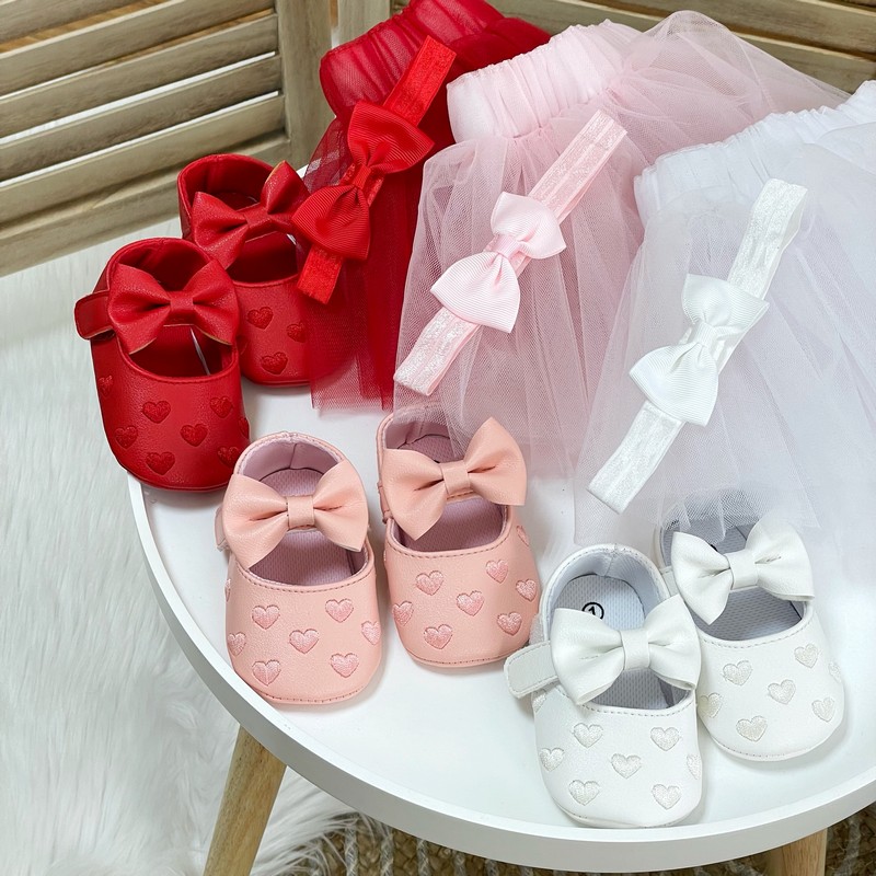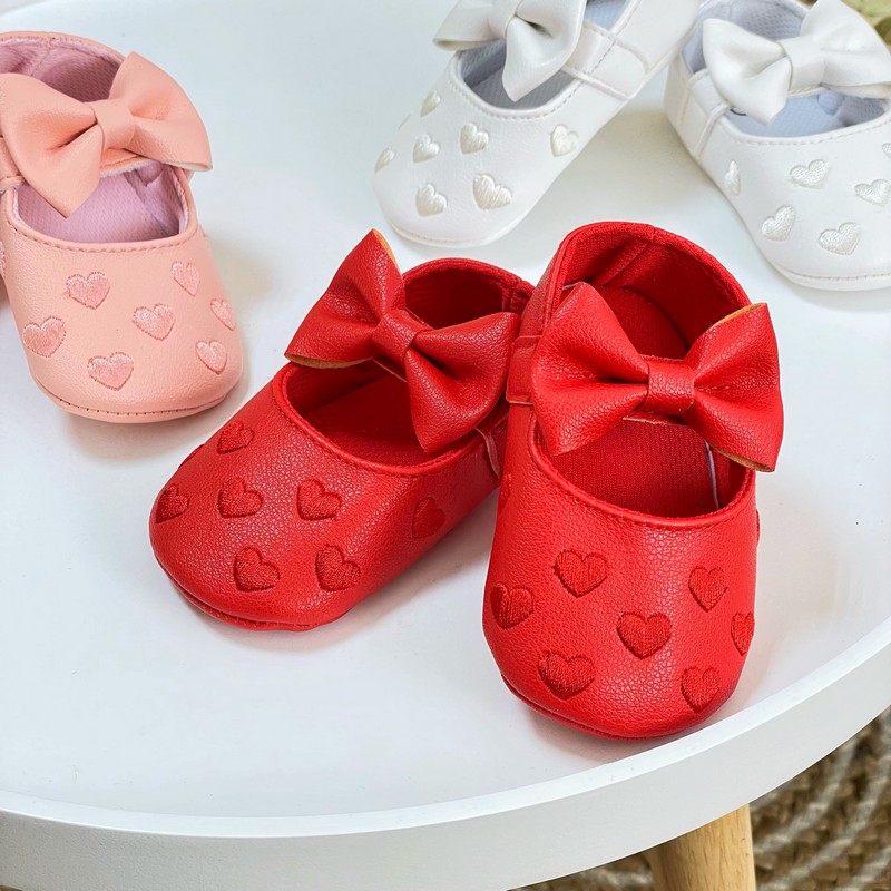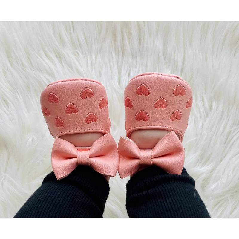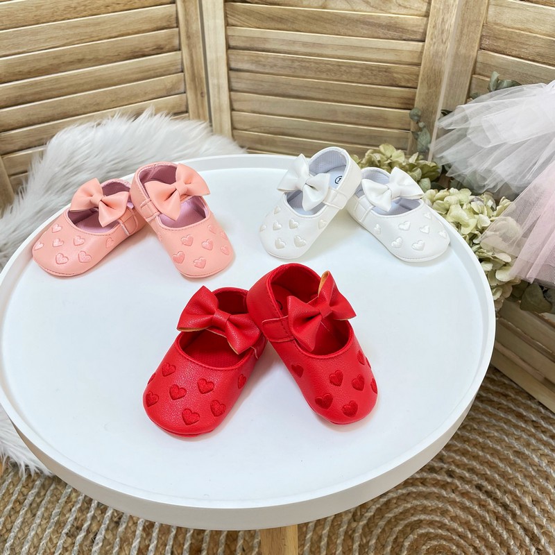 Туфельки-пінетки з бантиком та сердечками для дівчаток до року