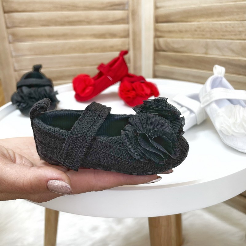 Перше взуття для малюків – дитячі ошатні туфлі балетки для новонародженої дівчинки.