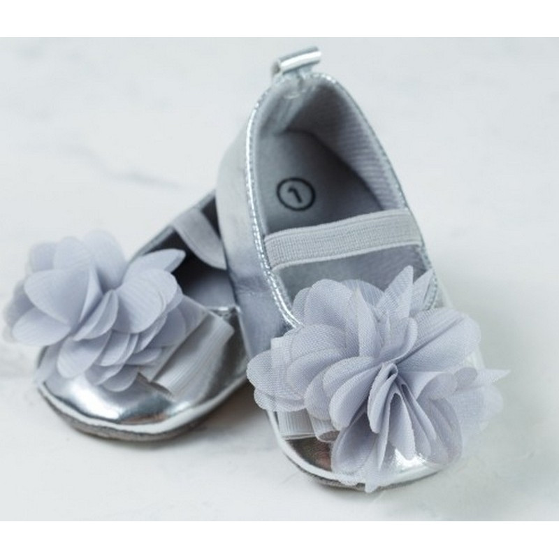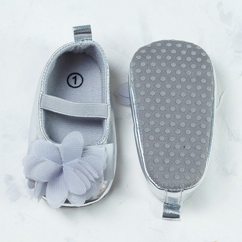 Туфельки-пінетки з квіточкою срібні 0-6міс