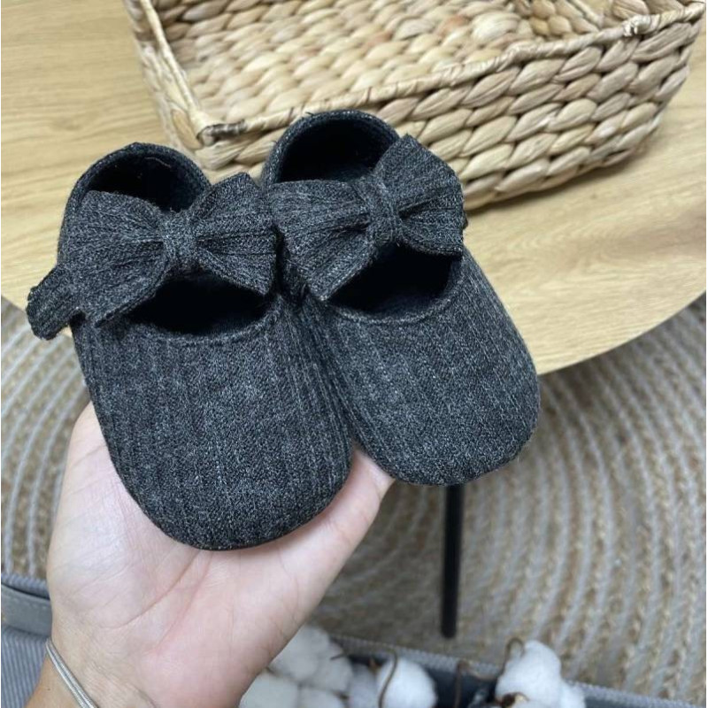Ці туфельки — ідеальний вибір для святкових моментів і щоденних образів. Виготовлені з м’якої тканини у рубчик, з елегантним бантиком і в модному графітовому кольорі, вони поєднують комфорт і красу.